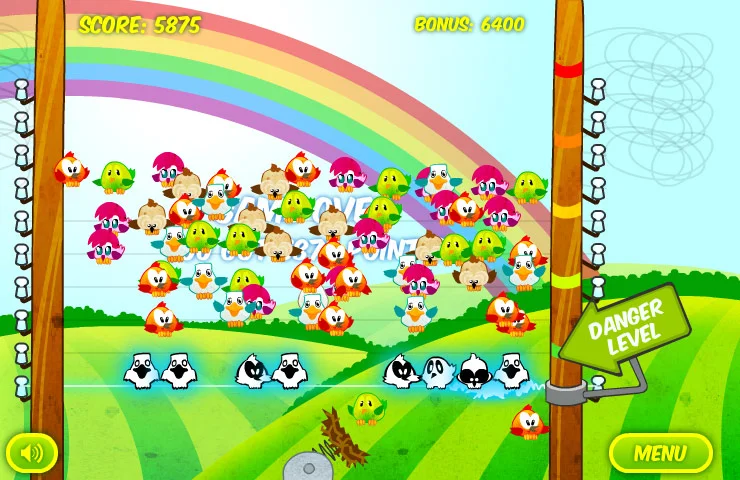 Birds On A Wire Shoot a bird into the flock to form a group of three or more matching birds to set them free. Try to save them all before they are pushed down into the high voltage wire near the ground. Keep a close eye on the danger level so you know when the birds will be pushed down.